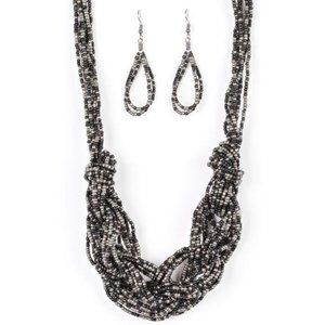 City Catwalk Black Seed Bead Necklace Earring Set