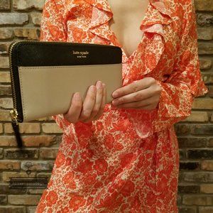 Kate Spade Large Continental Wallet Black Beige New with tag