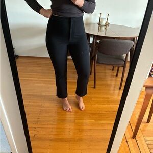 Soft real leather jacket. Beautiful warm tan colour. Shearling collar is removable. Nearly perfect condition, has a couple tiny spots on it (see in pictures) they both happen to be under the collar so you don't even see them. Fits between a small and a medium