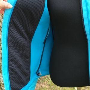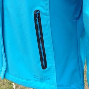 ❤Turquoise & black trim ladies jacket, size small, low pile fleece jacket in very good condition. Jacket has a pull tab at neck to gather closer & at the hip to cinch in. One zipped pocket on arm & two zipper pocket on front. One inside pocket. Outside pockets have slight wear due to zipper wear,see photos. Outside of this jacket has lots a life left in it. Measurements in Comments 😊 For Reference: Item # A068