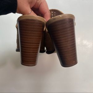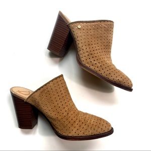 Sam Edelman eyelet Tan Suede Mule size 6. In good used condition with a scuff on the front toe and some peeling on the heals, see photos for more details!