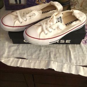 Converse All star Chuck Taylor White Sneakers. Size 8. NEW In Box!!. There is a small scuff mark on the right shoe but never have worn these shoes. Condition is New with box