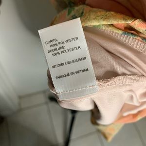Peach color with floral design and beige lace