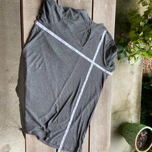 This ribbed charcoal tunic features a mock neck and a keyhole cutout accent.