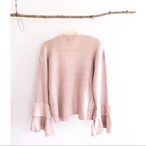 CCO OPEN SWEATER CARDIGAN WITH LONG RUFFLE SLEEVES DUSTY PINK