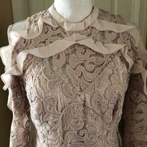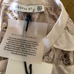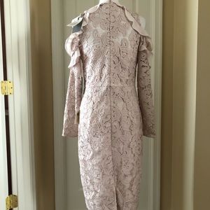 New With Tags (NWT) Nordstrom Cold Shoulder Lace Dress with lining. Size 6. Color: Summer Mist. Designer: Cooper St. Long Sleeves and back split. Hidden back zipper. Comes from a pet and smoke free home.