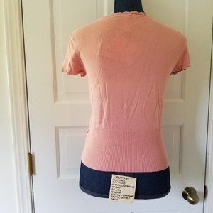 #605 NWT Rena Rowan PS Pink Stretch Knit Top w Crochet Trim & Buttons, $52, not lined OBO!