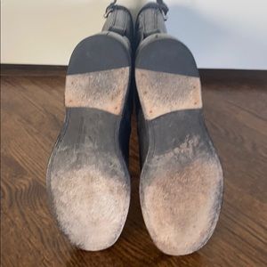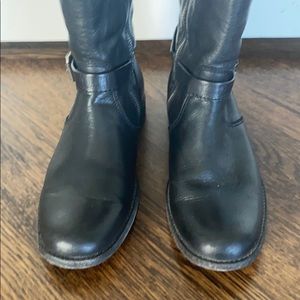 Black leather riding boots in good condition with minimal wear on heels - size 7.5.