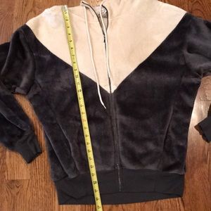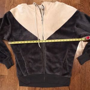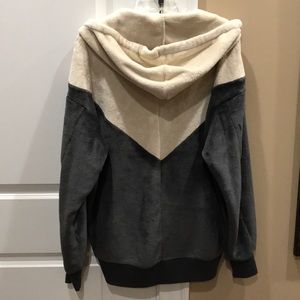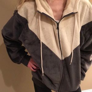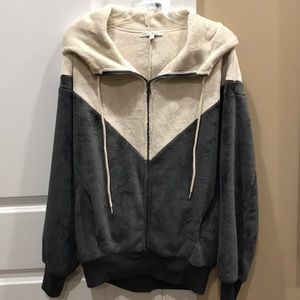 Express brand women’s jacket/hoodie. Very soft and toasty warm zip up jacket with 2 front pockets. Size small, gray and cream colored. Can be worn as a jacket or indoors as a hoodie for extra warmth. Brand new. Never worn. Tags were removed. Smoke free home.