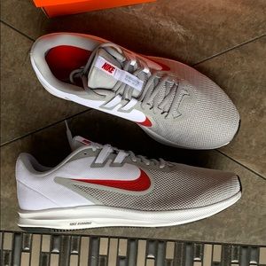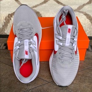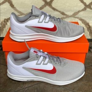 Brand new in a box authentic men’s Nike running training shoes wolf grey/university red