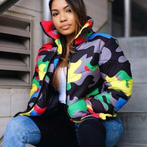 Unisex Camo Print Zipper Winter Parka Down Jack