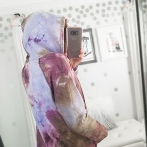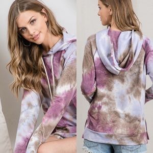 Fall Pullover Tie Dye Hoodie Tops Purple Taupe Comfy Tops
