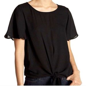 Picturing Socialite Sheer Tie Waist Short Sleeve Blouse. Size medium. Used but EUC. Please see pics for its condition