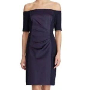 NEW Lauren Ralph Lauren Navy off shoulder satin sheath dress size 6