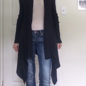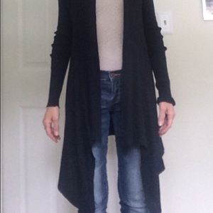 Navy ribbed sweater, angled in front, shorter in back. 100 percent cotton. Great over jeans. Rarely worn.
