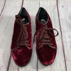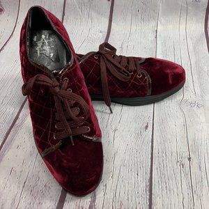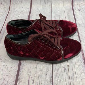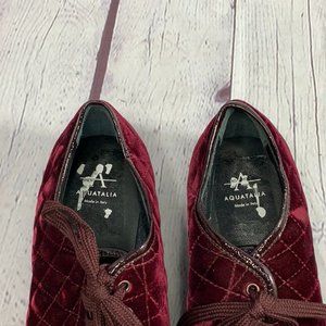 Aquatalia Glenda Wine Burgundy Quilted Weatherproof Velvet Sneakers SZ 8
