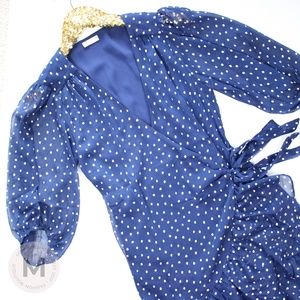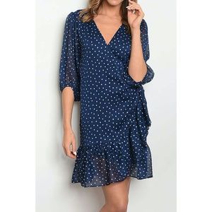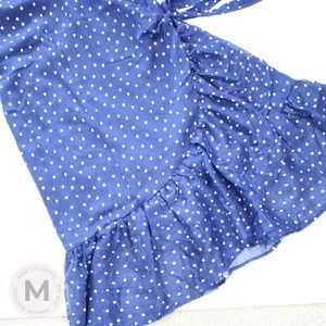 Navy Blue Dotted Ruffle Hem Wrap Dress