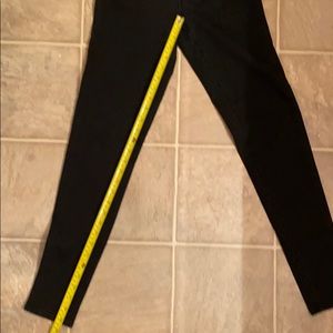 A pair of black high waisted American Eagle Jeggings. They have no front pockets and no button or zipper. They do have back pockets. They are 4 longs.