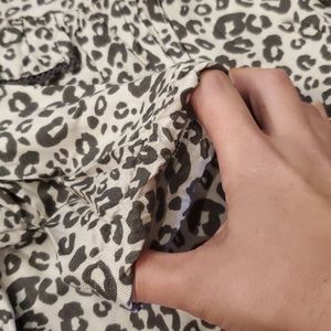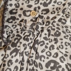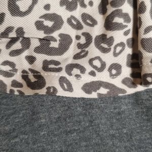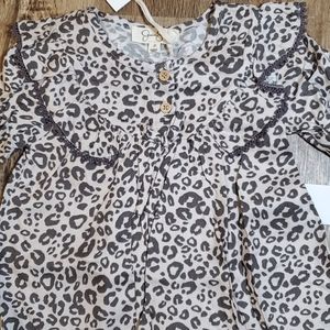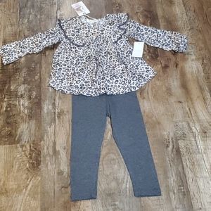 Matching outfit includes: long sleeve leopard print shirt. Brown button on the front. Gray elastic waist leggings. Comes in size 3T