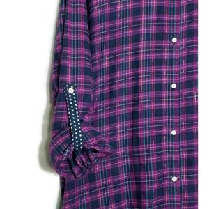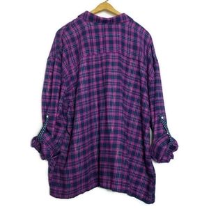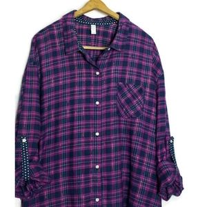 Plaid Flannel Button Up Top Roll Tab Sleeves XXL
