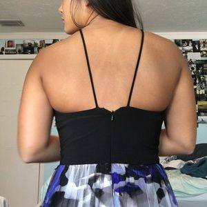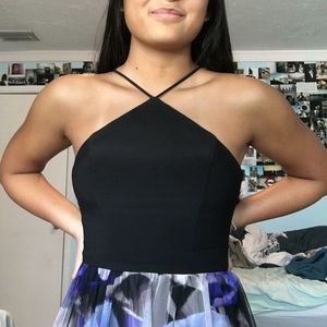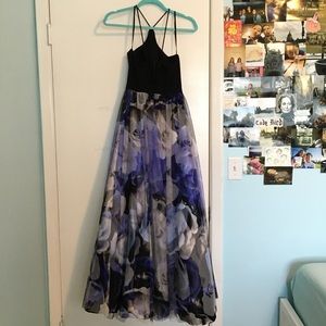 Blondie Nites Floral Print Mesh Halter Gown