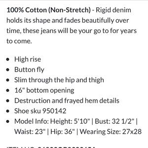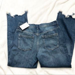 Free People high rise denim jeans button fly frayed bottom flare ripped distressed ankle length size 28
