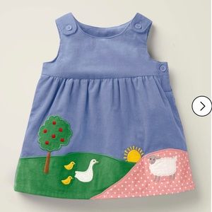 Layer up little lambs in this pinafore dress. It's made from supersoft fine cord, with a printed lining for maximum cosiness and adjustable buttoned straps to make room for growth. Mini animal-lovers will adore the farmyard scene, complete with an apple tree, ducks and friendly sheep.