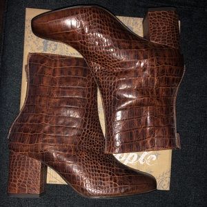 Free People Brown Cecile Croc Embossed Bootie