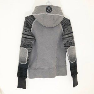 Excellent condition Rare Special Edition Lululemon Scuba Hoodie. Cabin cozy with sweater knit sleeves, quilted body, and blanket stitch details. Ombre Sleeves and elbow patches. Perfect for fall and winter just for taking a walk, running errands, or if you want to be warm and stylish for a skating date:)