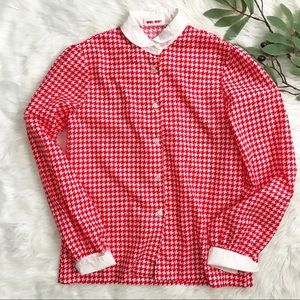 Vintage Red White Houndstooth Button Down Shirt