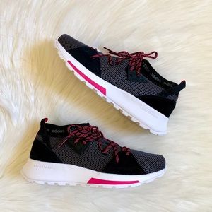 New In Box- Adidas Quesa Running Sneakers In Black/ Grey/ Pink.