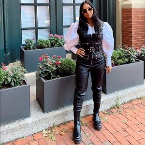 WeWoreWhat Vegan Leather Overalls. Danielle Bernstein of We Wore What and ShopWoreWoreWhat created these perfect leather style Moto overalls. Adjustable belt and straps with silver zipper pocket detailing and zip front. Material is ever so stretchy so the piece is extremely flattering. These are brand new with tags. Lowest price for these across posh!