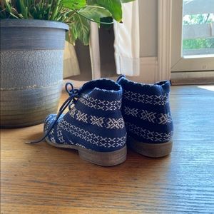 Size 6, Forever 21 blue patterned ankle boots (Like New)