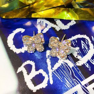 *NEW 18K Yellow Gold Diamond Butterfly Earrings B