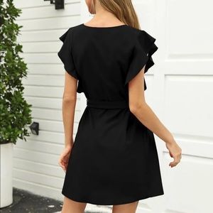 Ruffle frill belted short sleeve dress w/ pockets