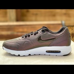Authentic Nike Air Max 1 Ultra Moire in this super RARE iridescent colorway. The entire upper of each shoe are this color changing colorway with a white midsole and black laces. These are impossible to find!