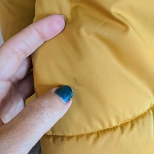 This coat has one small mark on the lower back, as shown in photos.