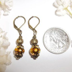 This beautiful beaded bohemian style earring set is brand new and handmade by me - wvluckygirl. Handcrafted with gorgeous brown glass beads that have a metallic gold & silver stripe design. They also have rustic brown antiqued bronze toned costume jewelry beads. The pair dangle & drop from lever backs for her pierced ears. Nickel safe and hypoallergenic. Measure 1 5/8 inches tall & not quite 3/8 inch wide. Each single earring weighs 1.7 grams. Lightweight! Buy it now before someone else does!