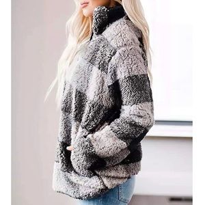 NWT Fleece Pullover Plaid Sweatshirt/Jacket