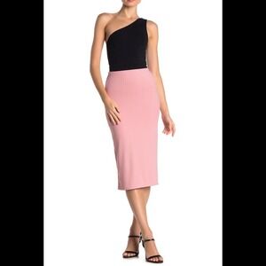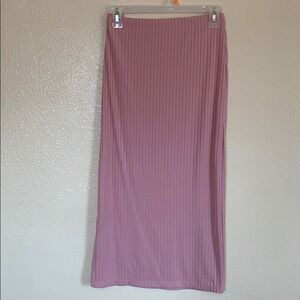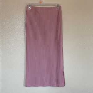 Ribbed high waisted high rise stretchy comfortable midi skirt in a bubblegum pastel pink skirt bodycon fit Tag is Velvet torch sold by Nordstrom