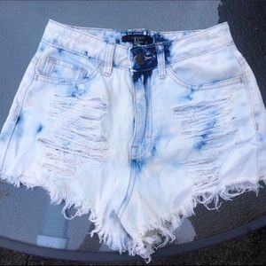 High waisted denim washed shorts (light blue and dark blue) worn once from Forever21, size small.