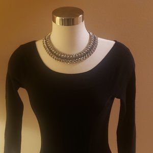 3 qtr length sleeves with silver tone button detail at end of sleeve