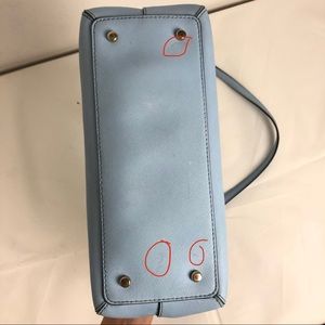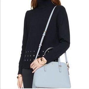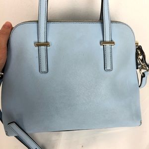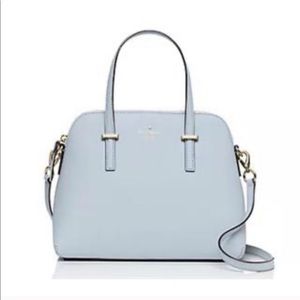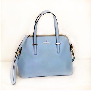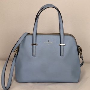 Kate Spade Cedar Street Maise blue leather satchel handbag. Comes with detachable crossbody strap. Crosshatch leather. Zipper top. Inner zip pocket and inner pouches. Two marks on the bottom as pictured. Otherwise in great condition