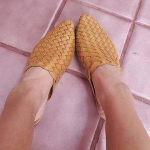 In excellent condition. Tiny bit of wear to toes and heels, along eith a little dirt residue on bottoms.