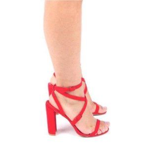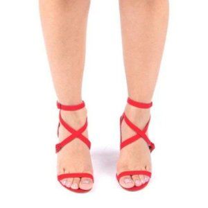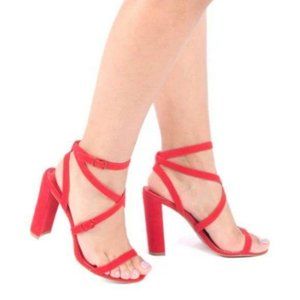 Strappy Faux Suede Block Heels in Red