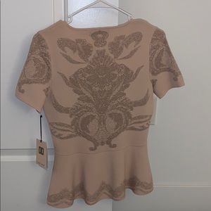 BRAND NEW W/ TAGS: Ivanka Trump pink and rose gold peplum top, size S