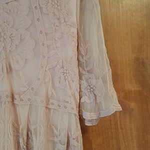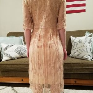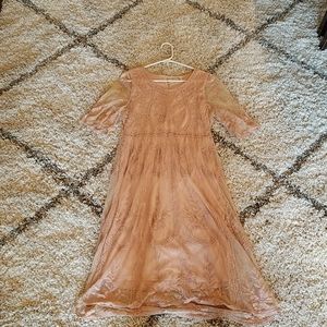 Beautiful blush pink dress. Same color underdress under the lace. Not see through at all! Worn only a handful of times. In new condition. Wonderful to wear everydya or to dress up. Worn for senior graduation. Bump friendly as it has some stretch. The lace is so detailed and beautiful. And it is so soft, not scratchy at all. As always, price is negotiable. Make an offer!