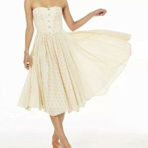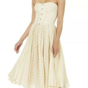 NWT. Free People Womens Amanda Ivory Polka Dot Smocked Midi Dress