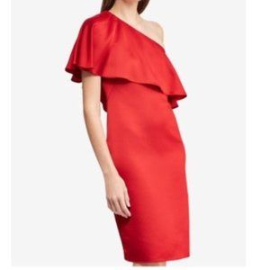 Ralph Lauren stands for American Tradition- since 1967. Timeless design and modern romantic luxury fabrics make up its full line of quality apparel and accessories for the wardrobe and your home. Classic gorgeous bright red one shoulder ruffle cocktail elegant eveningwear shift dress. solid color makes it easy to mix and match with your favorite accessories!