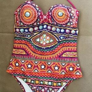 This is a brand new Moschino Multi color One-Piece swimsuit. It is a size 36/Medium. Has a removable strap so can be worn strapless. Beautiful piece. Retail $295.